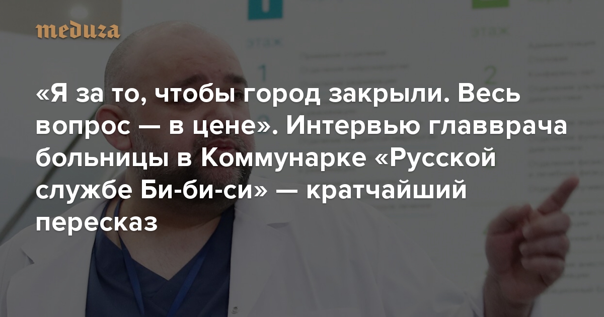 «Я за то, чтобы город закрыли. Весь вопрос — в цене» Интервью главврача больницы в Коммунарке «Русской службе Би-би-си» — кратчайший пересказ