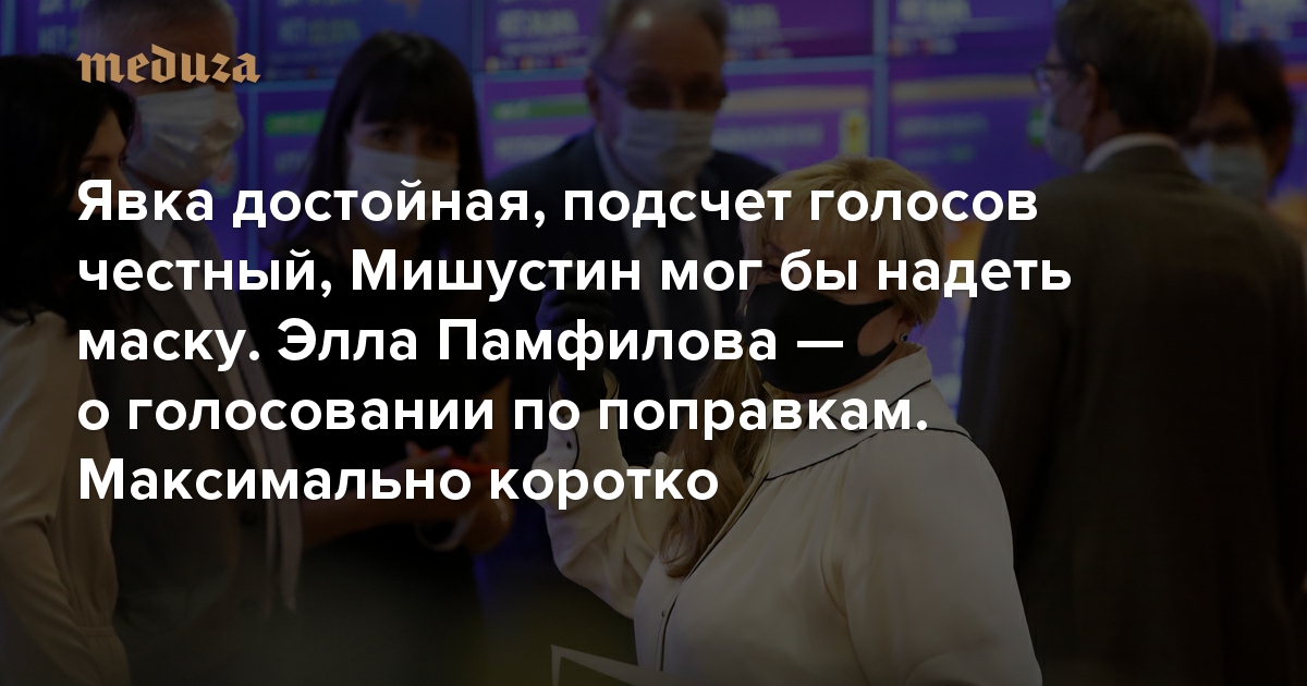 Явка достойная, подсчет голосов честный, Мишустин мог бы надеть маску Элла Памфилова — о голосовании по поправкам. Максимально коротко