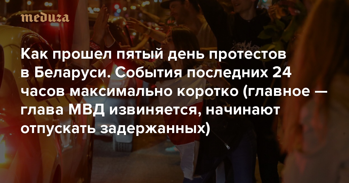 Как прошел пятый день протестов в Беларуси. События последних 24 часов максимально коротко (главное — глава МВД извиняется, начинают отпускать задержанных)