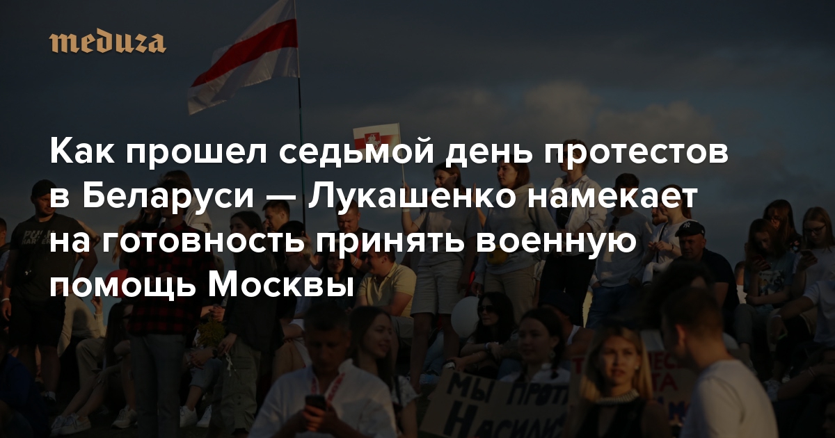 Как прошел седьмой день протестов в Беларуси. Максимально коротко Главное — Лукашенко намекает на готовность принять военную помощь Москвы, противников режима поддерживает посол в Словакии
