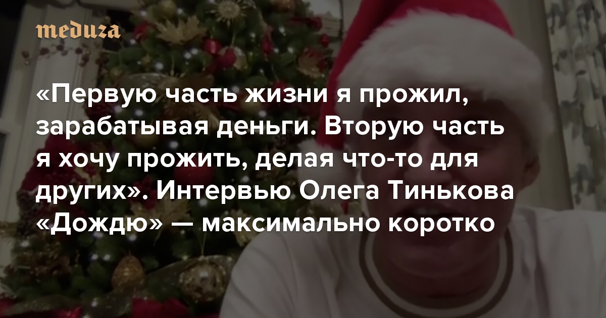 Первую часть жизни я прожил, зарабатывая деньги. Вторую часть я хочу прожить, делая что-то для других Интервью Олега Тинькова «Дождю». Максимально коротко