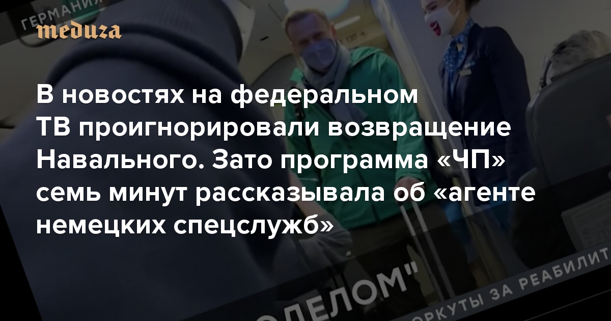 В новостях на федеральном ТВ проигнорировали возвращение Навального. Зато программа «ЧП» семь минут рассказывала об «агенте немецких спецслужб» Вот краткий пересказ сюжета