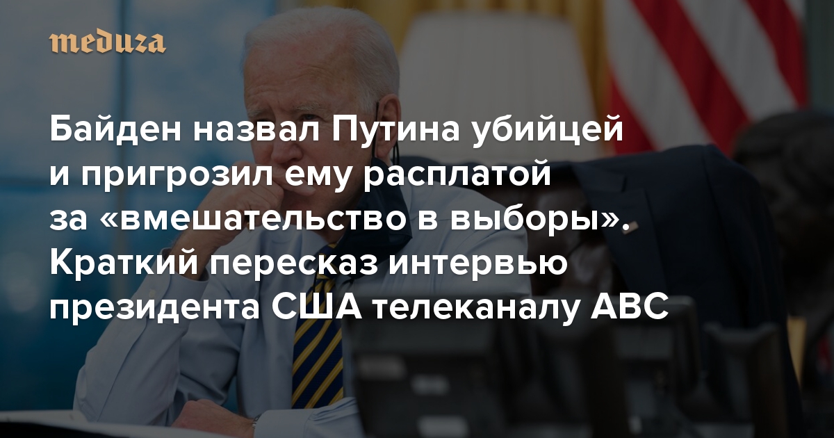 Байден назвал Путина убийцей и пригрозил ему расплатой за «вмешательство в выборы» Краткий пересказ интервью президента США телеканалу ABC