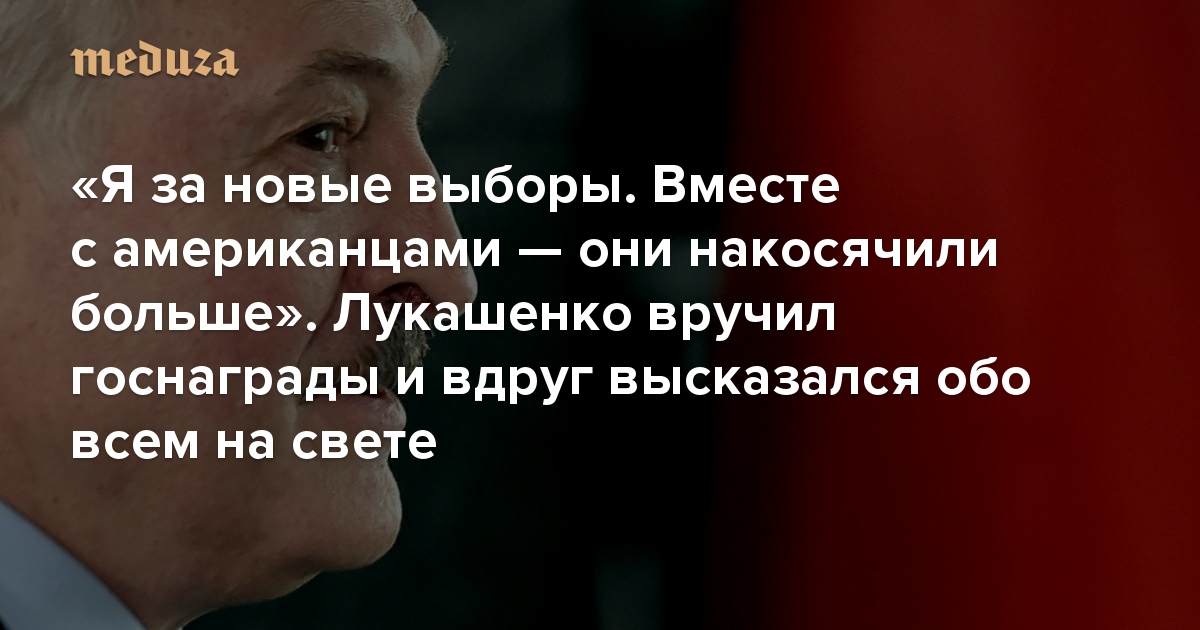«Я за новые выборы. Вместе с американцами — они накосячили больше» Лукашенко вручил госнаграды и вдруг высказался обо всем на свете