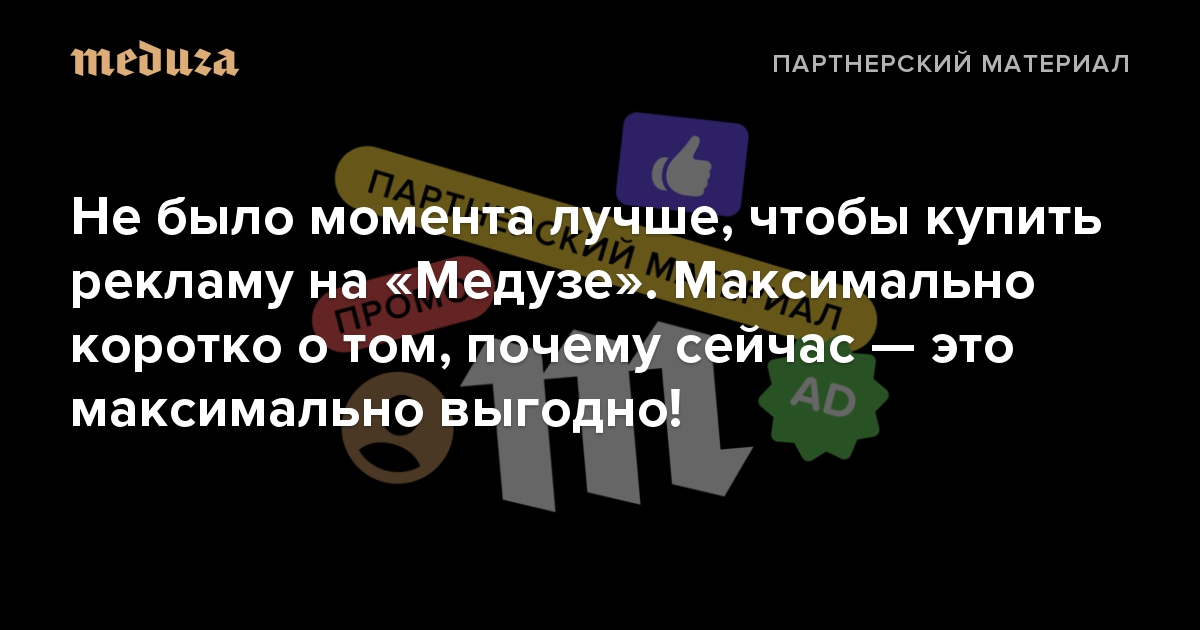 Не было момента лучше, чтобы купить рекламу на «Медузе». Максимально коротко о том, почему сейчас — это максимально выгодно!