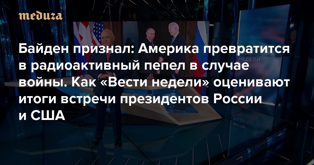 Байден признал: Америка превратится в радиоактивный пепел в случае войны Как «Вести недели» оценивают итоги встречи президентов России и США. Кратчайший пересказ