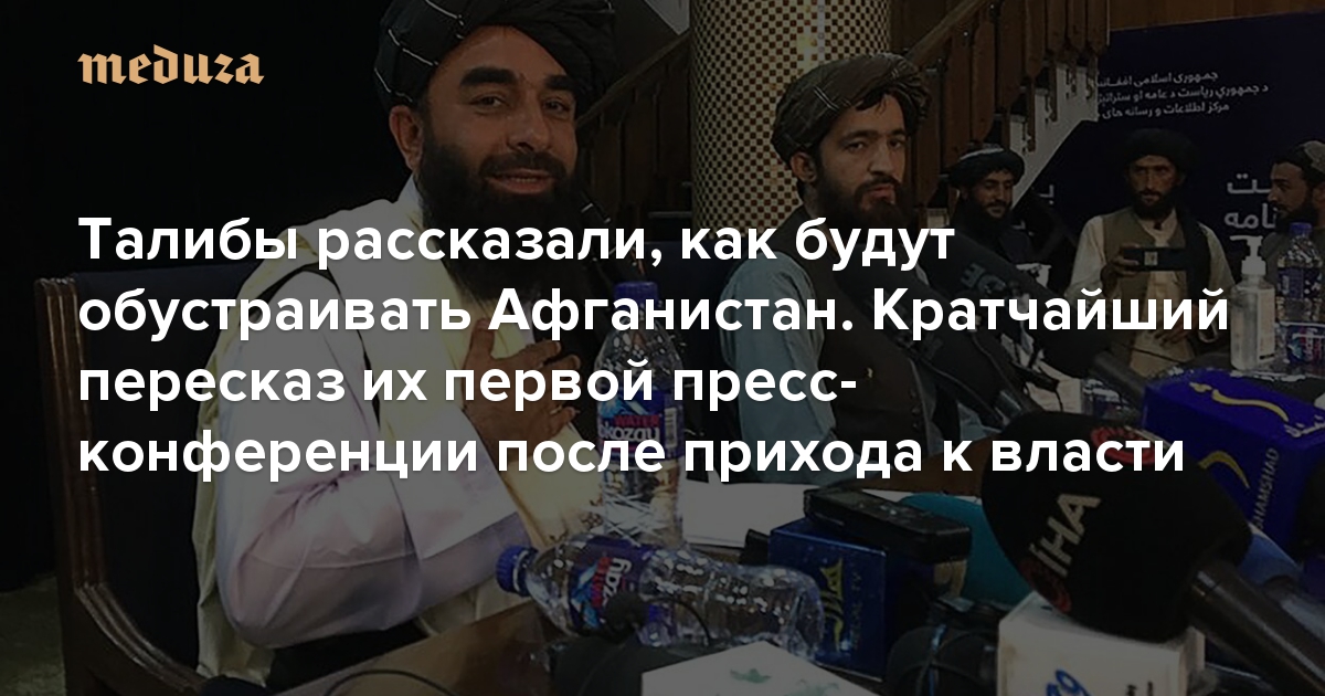 Это приблизительный пересказ заявлений, которые официальный представитель «Талибана» Забихулла Муджахид сделал в Кабуле во время первой пресс-конференции после смены власти в Афганистане. Цитаты необязательно являются дословными. Полностью пресс-конференцию можно посмотреть здесь.