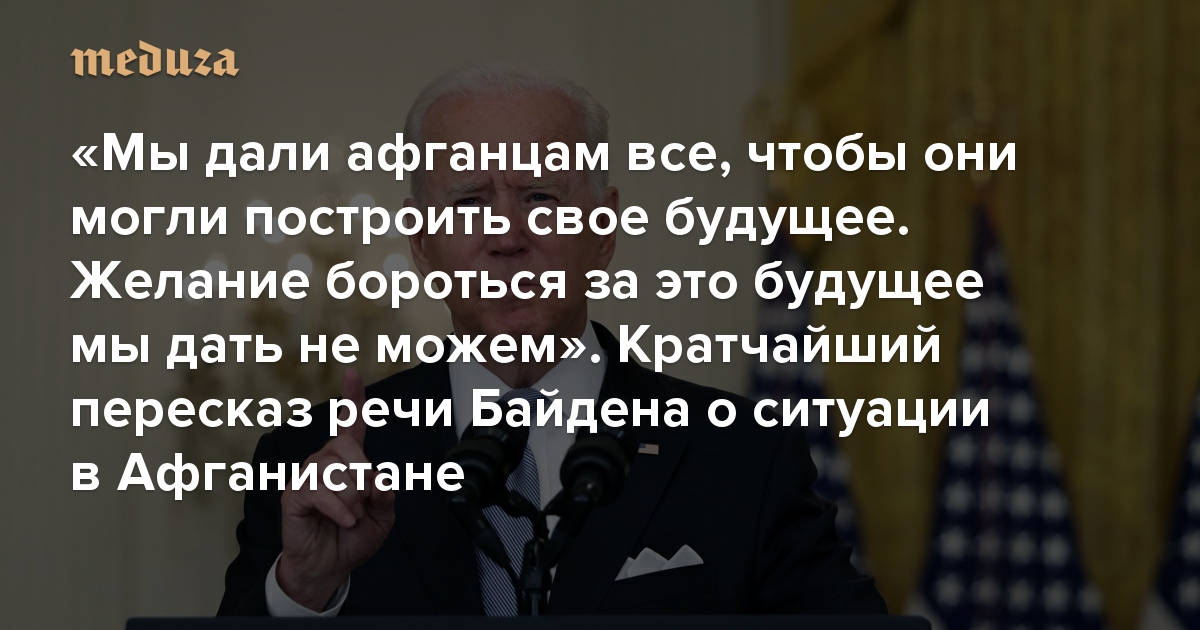 «Мы дали афганцам все, чтобы они могли построить свое будущее. Желание бороться за это будущее мы дать не можем» Кратчайший пересказ речи Байдена о ситуации в Афганистане
