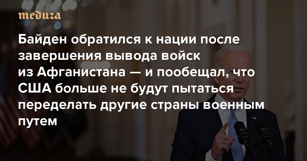 Байден обратился к нации после завершения вывода войск из Афганистана — и пообещал, что США больше не будут переделывать другие страны военным путем Кратчайший пересказ