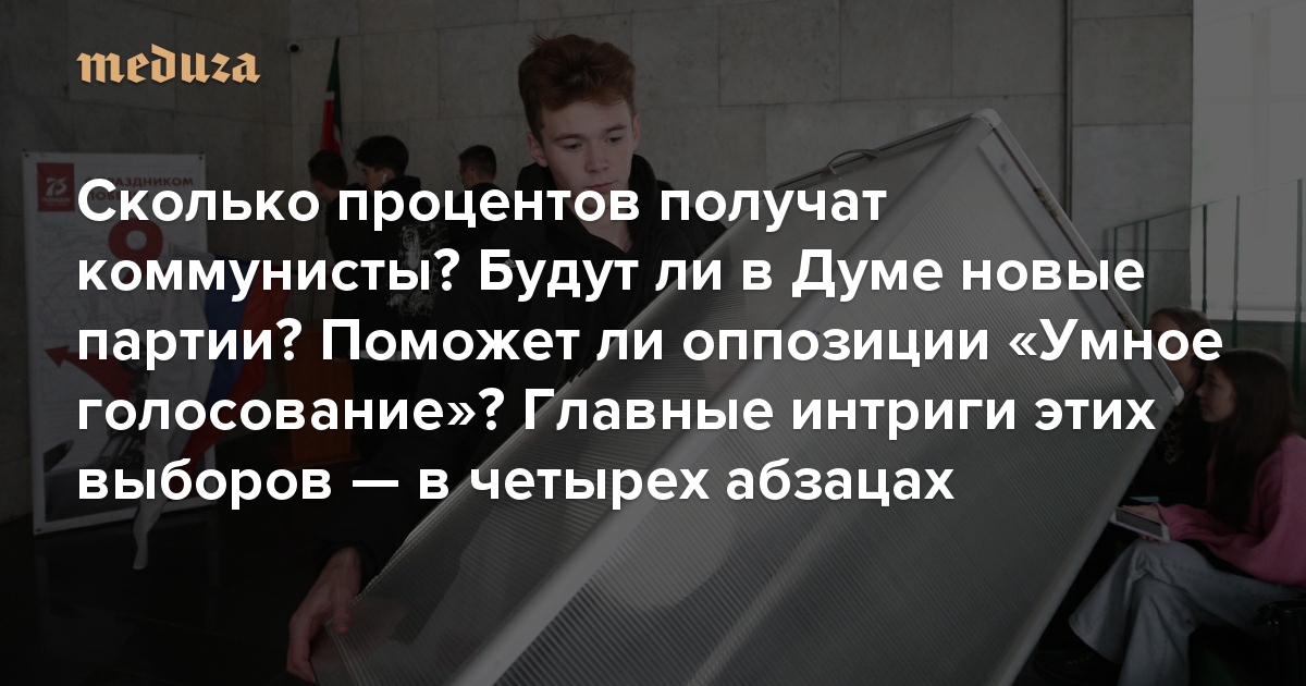 Сколько процентов получат коммунисты? А единороссы? Будут ли в Думе новые партии? Поможет ли оппозиции «Умное голосование»? Главные интриги этих выборов — в четырех абзацах