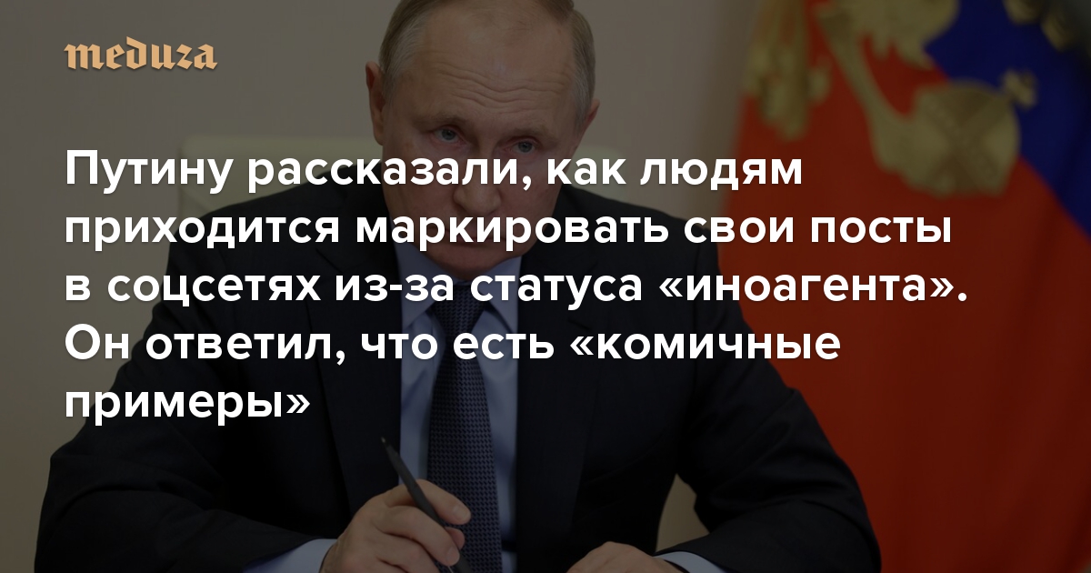 Путину рассказали, как людям приходится маркировать свои посты в соцсетях из-за статуса «иноагента». Он ответил, что есть «комичные примеры» Как прошла встреча Путина с Советом по правам человека