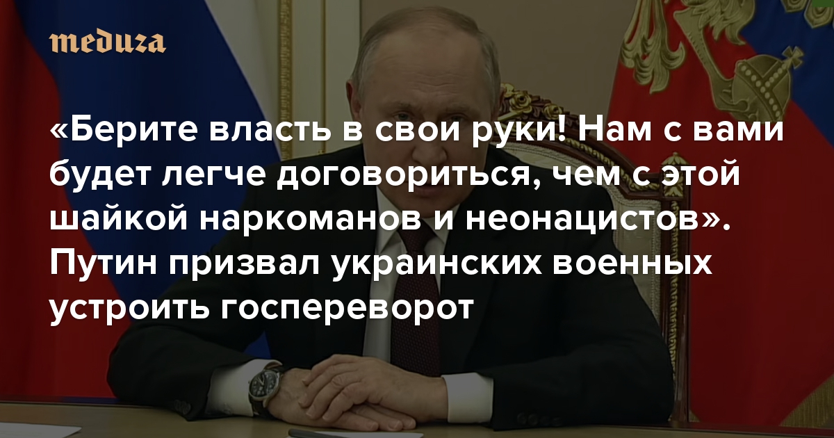 «Берите власть в свои руки! Нам с вами будет легче договориться, чем с этой шайкой наркоманов и неонацистов» Путин призвал украинских военных устроить госпереворот
