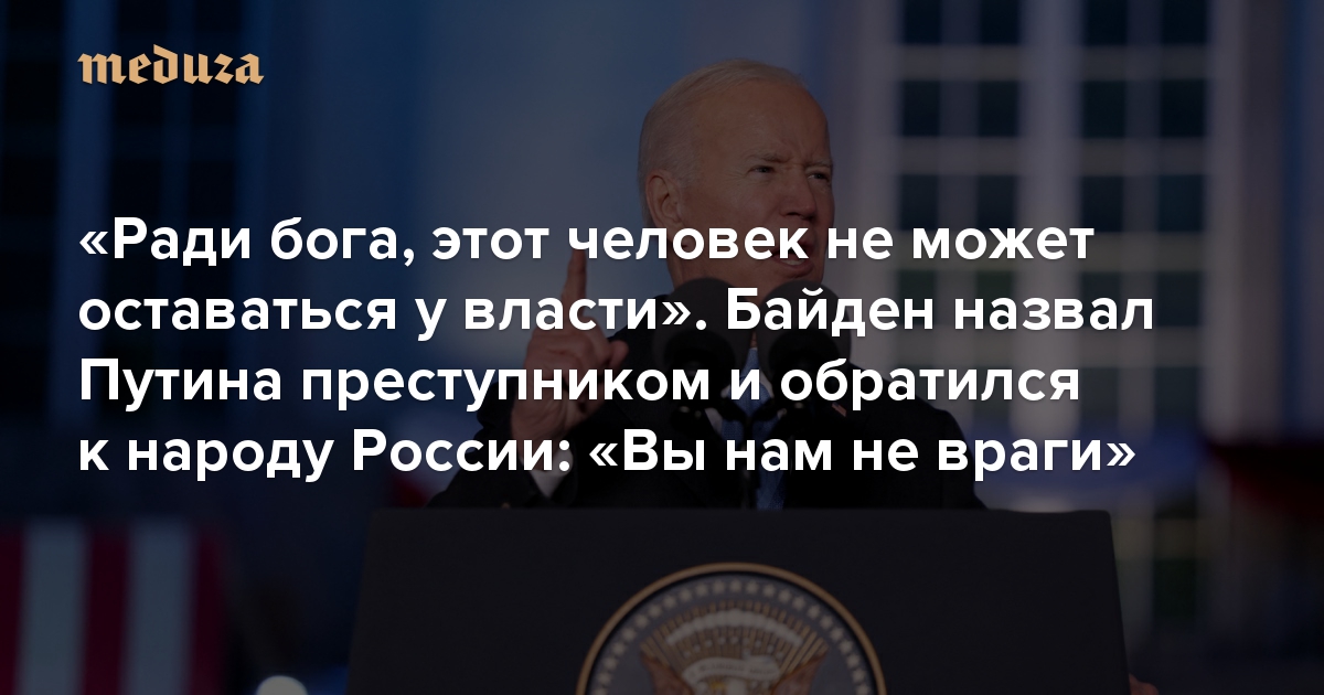 «Ради бога, этот человек не может оставаться у власти» Байден назвал Путина преступником и обратился к народу России: «Вы нам не враги»