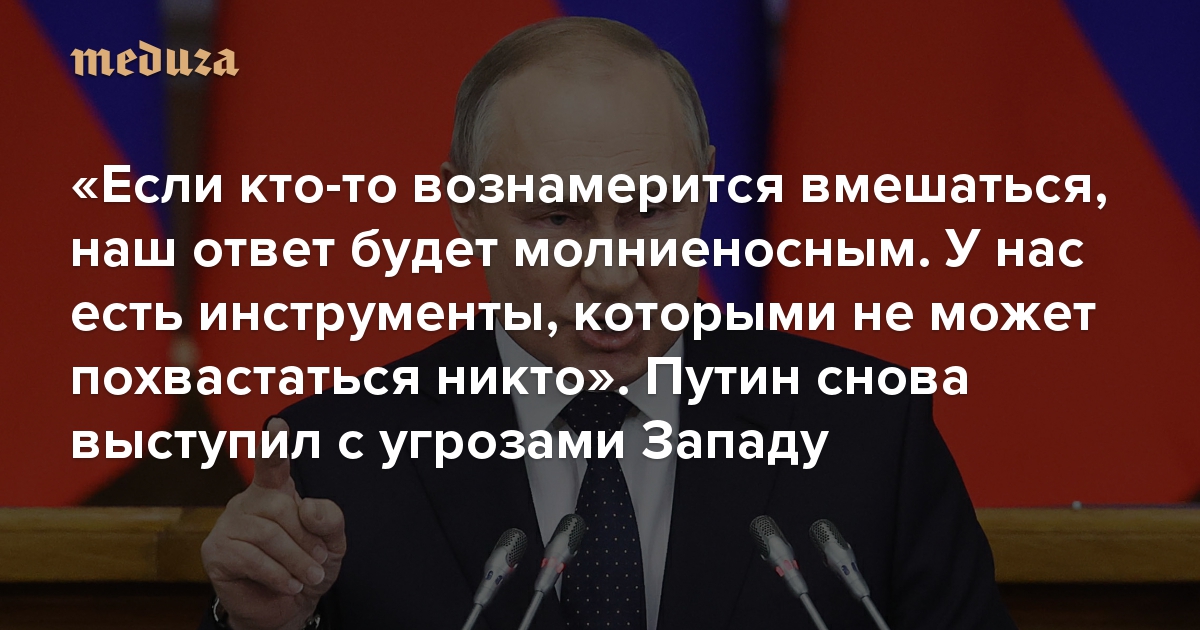 «Если кто-то вознамерится вмешаться, наш ответ будет молниеносным. У нас есть инструменты, которыми не может похвастаться никто» Путин снова выступил с угрозами Западу в связи с войной в Украине