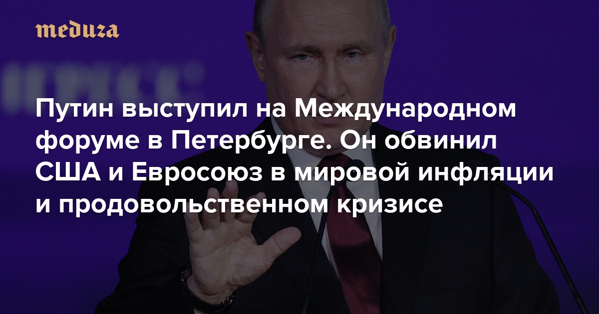 «При чем здесь наша военная операция в Донбассе?» Путин выступил с (очень длинной) речью на форуме в Петербурге. Он обвинил США и Европу в мировой инфляции и продовольственном кризисе. Краткий пересказ