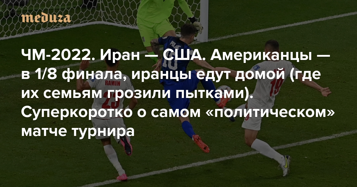 ЧМ-2022. Иран — США. Американцы — в 1/8 финала, иранцы едут домой (где их семьям грозили пытками) Суперкоротко о самом «политическом» матче турнира