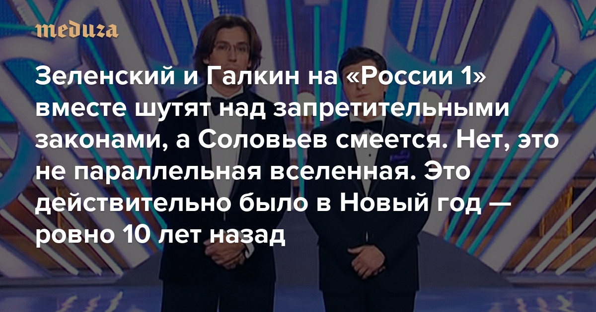 Зеленский и Галкин на «России 1» вместе шутят над запретительными законами, а Соловьев смеется Нет, это не параллельная вселенная. Это действительно было в Новый год — ровно 10 лет назад