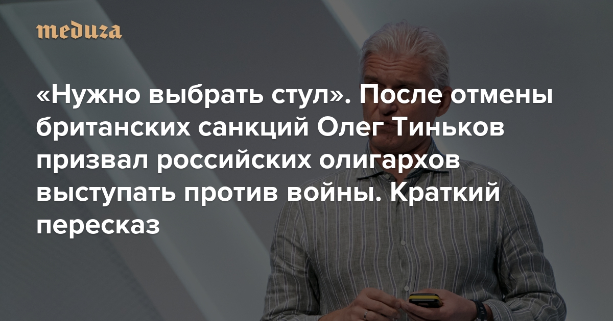 «Нужно выбрать стул» После отмены британских санкций Олег Тиньков призвал российских олигархов выступать против войны. Краткий пересказ