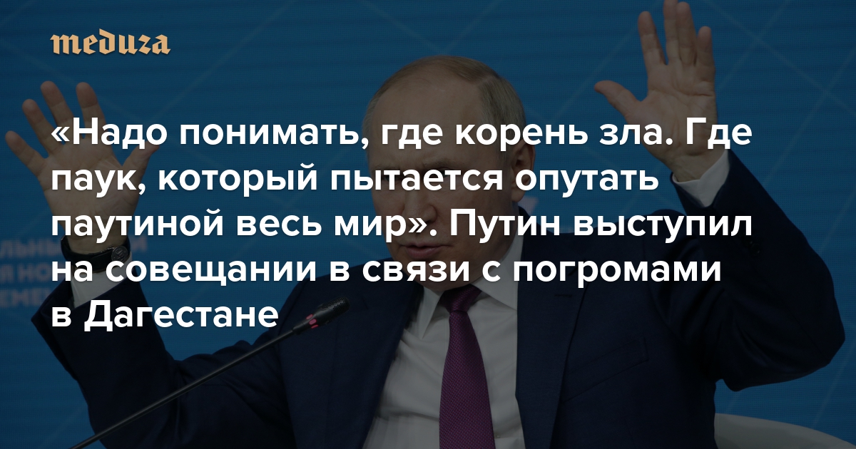«Надо понимать, где корень зла. Где паук, который пытается опутать паутиной весь мир» Путин выступил на совещании в связи с антисемитскими погромами в Дагестане. Да-да, он объяснил, где корень зла