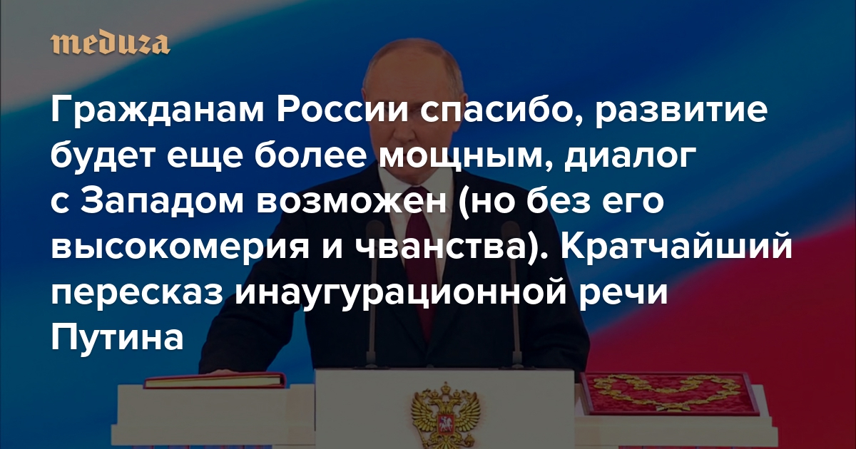 Гражданам России спасибо, развитие будет еще более мощным, диалог с Западом возможен (но без его высокомерия и чванства) Кратчайший пересказ инаугурационной речи Путина