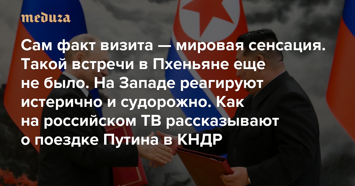 Сам факт визита — мировая сенсация. Такой встречи в Пхеньяне еще не было. На Западе реагируют истерично и судорожно Как на российском телевидении рассказывают о поездке Путина в Северную Корею