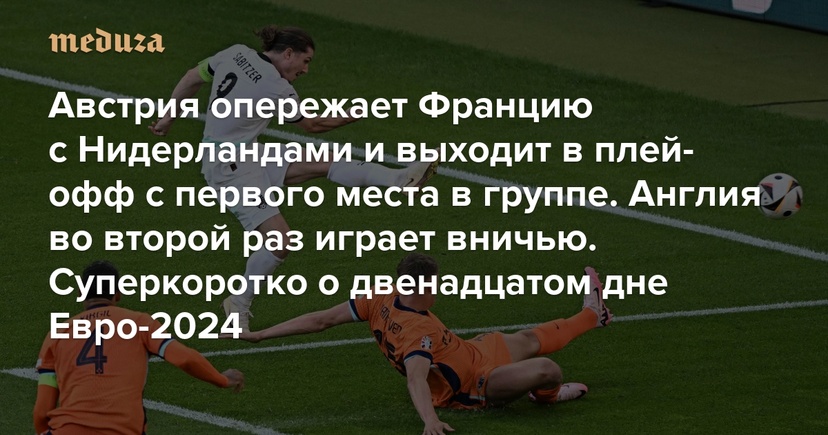 Австрия опережает Францию с Нидерландами и сенсационно выходит в плей-офф с первого места в группе. Англия во второй раз играет вничью Евро-2024. Суперкоротко о двенадцатом дне турнира