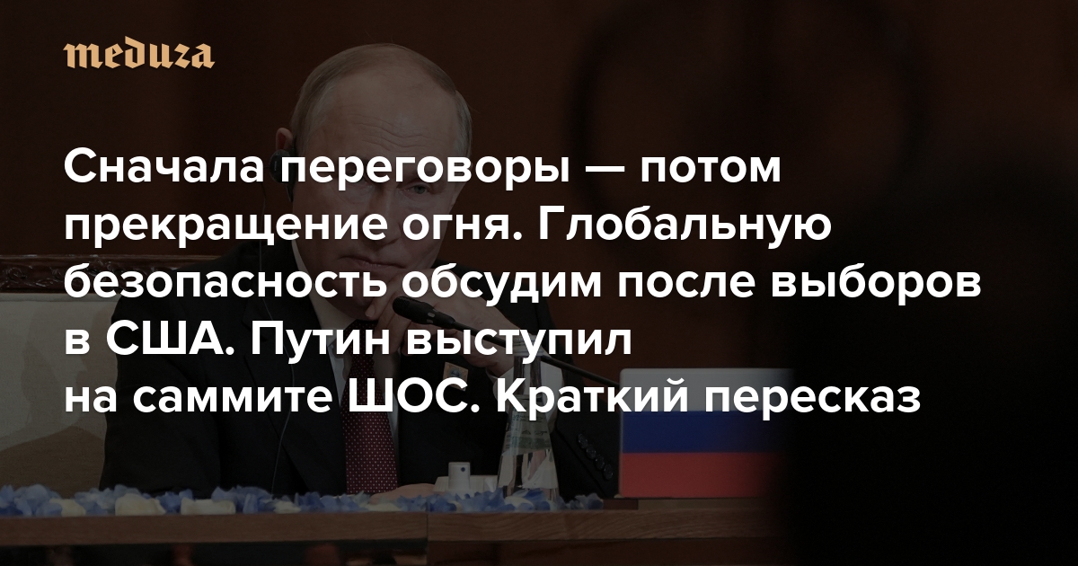 Сначала переговоры — потом прекращение огня. Глобальную безопасность обсудим после выборов в США Путин выступил на саммите ШОС. Краткий пересказ