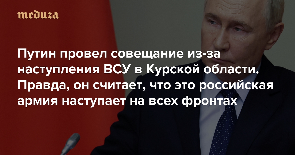 Путин провел совещание из-за наступления ВСУ в Курской области. Правда, он считает, что это российская армия наступает на всех фронтах Курский губернатор не знает о судьбе двух тысяч жителей, белгородский — не имеет «полной информации» о беженцах