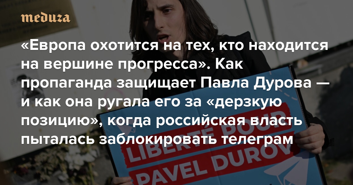 «Европа охотится на тех, кто находится на вершине прогресса» Как пропаганда защищает Павла Дурова — и как она ругала его за «дерзкую позицию», когда российская власть пыталась заблокировать телеграм