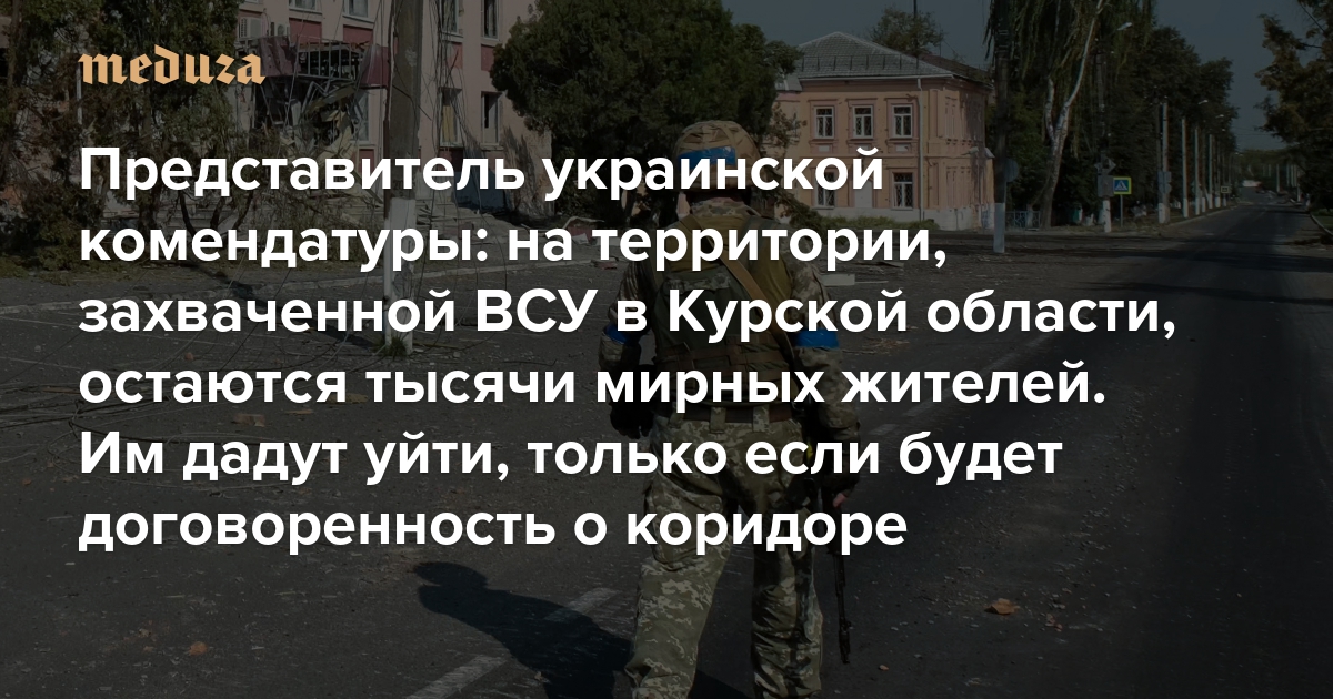 На территории, захваченной ВСУ, остаются тысячи мирных жителей. Им дадут уйти, только если будет договоренность о коридоре Представитель украинской комендатуры в Курской области дал интервью AFP. Краткий пересказ