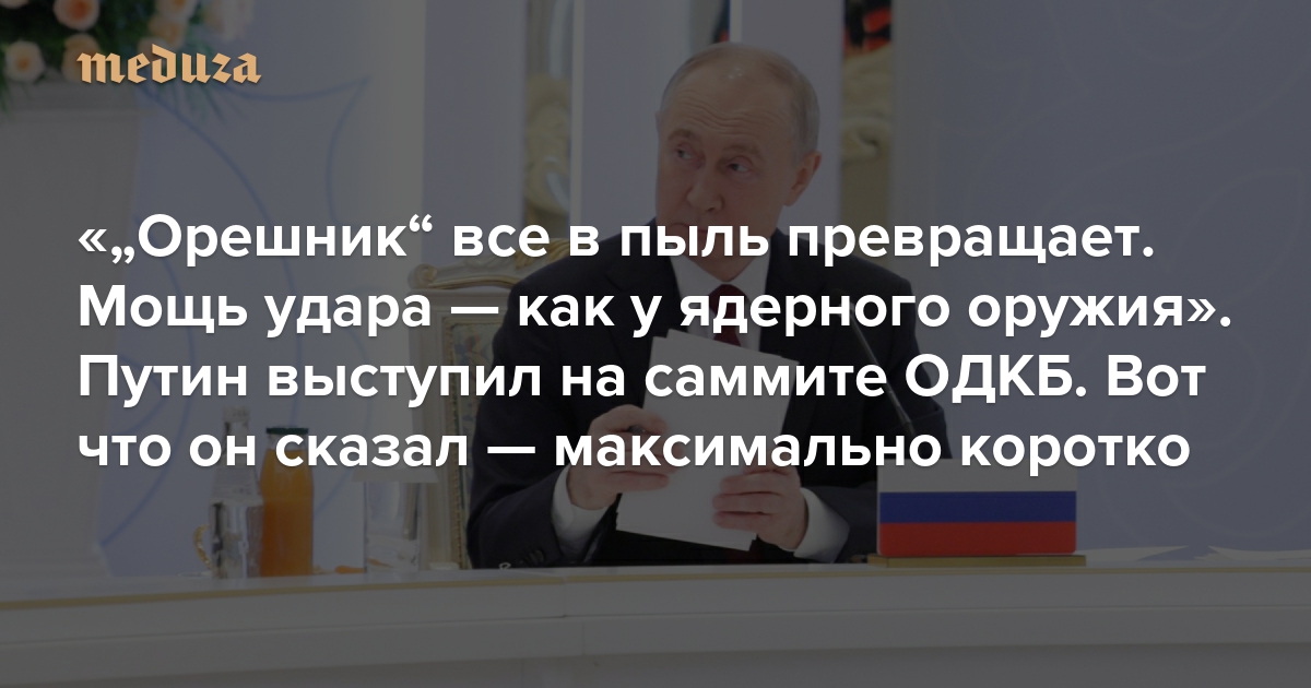 «„Орешник“ все в пыль превращает. Мощь удара — как у ядерного оружия» Путин выступил на саммите ОДКБ. Вот что он сказал — максимально коротко