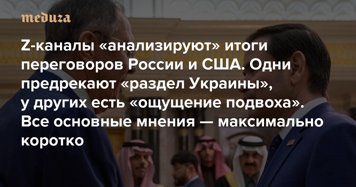 Z-каналы «анализируют» итоги переговоров России и США. Одни предрекают «раздел Украины», у других есть «ощущение подвоха» Все основные мнения — максимально коротко