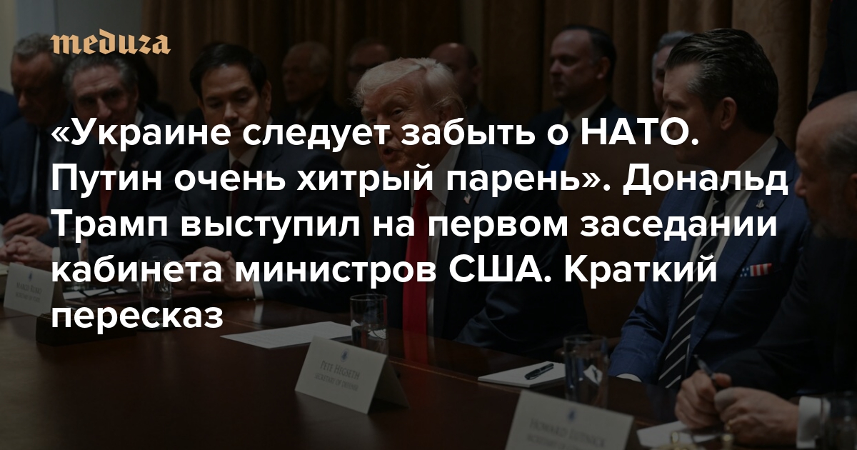 «Украине следует забыть о НАТО. Путин очень хитрый парень» Дональд Трамп выступил на первом заседании кабинета министров США. Краткий пересказ