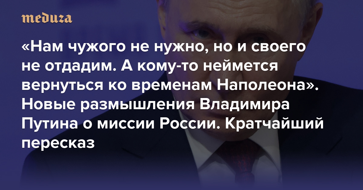 «Нам чужого не нужно, но и своего не отдадим. А кому-то неймется вернуться ко временам Наполеона» Новые размышления Владимира Путина о миссии России. Кратчайший пересказ