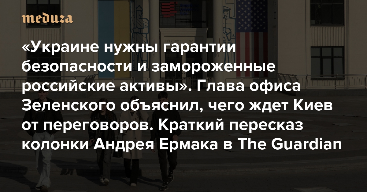 «Украине нужны гарантии безопасности и замороженные российские активы» Глава офиса Зеленского объяснил Европе, чего ждет Киев от переговоров. Краткий пересказ колонки Андрея Ермака в The Guardian