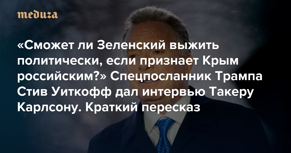«Сможет ли Зеленский выжить политически, если признает Крым российским?» Спецпосланник Трампа Стив Уиткофф дал интервью Такеру Карлсону. Краткий пересказ