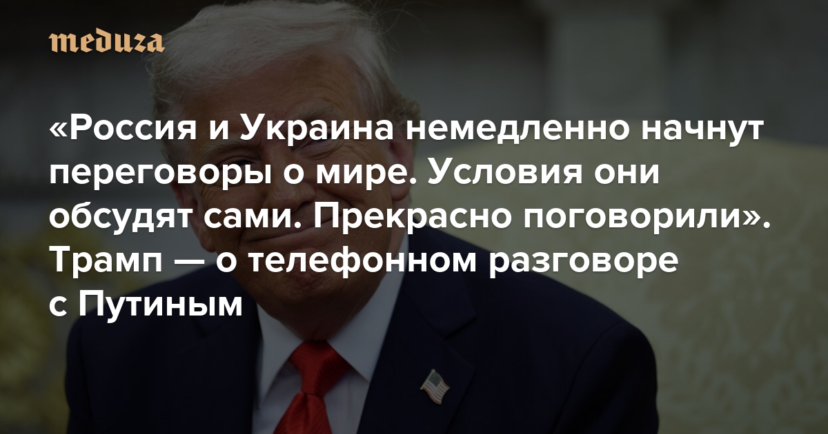 «Россия и Украина немедленно начнут переговоры о мире. Условия они обсудят сами. Прекрасно поговорили» Трамп — о телефонном разговоре с Путиным