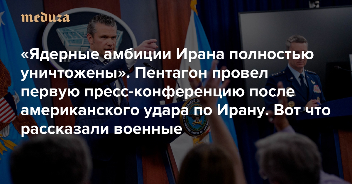 «Ядерные амбиции Ирана полностью уничтожены» Пентагон провел первую пресс-конференцию после американского удара по Ирану. Вот что рассказали военные