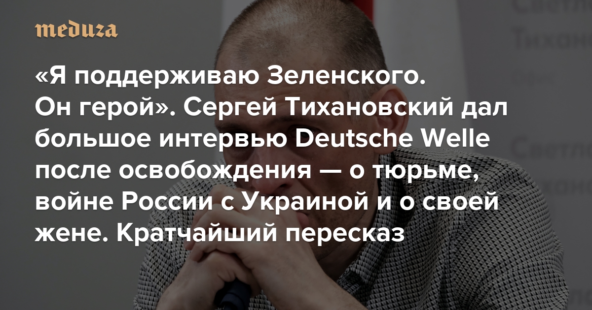 «Я поддерживаю Зеленского. Он герой» Сергей Тихановский дал большое интервью Deutsche Welle после освобождения — о тюрьме, войне России с Украиной и о своей жене. Кратчайший пересказ