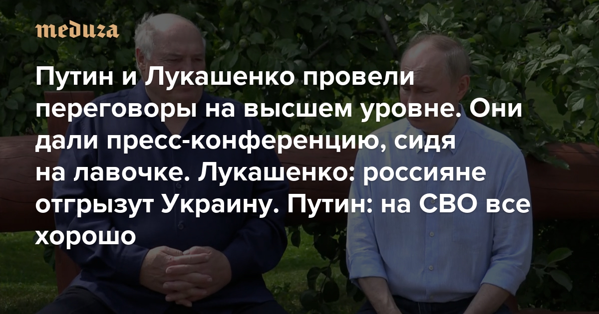 Путин и Лукашенко провели переговоры на высшем уровне. Они дали пресс-конференцию, сидя на лавочке Лукашенко: россияне отгрызут Украину. Путин: на СВО все хорошо