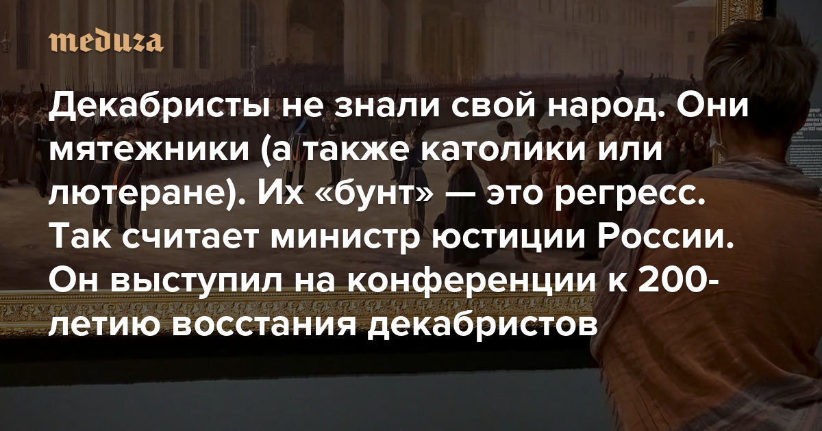 Декабристы не знали свой народ. Они мятежники (а также католики или лютеране). Их «бунт» — это регресс Так считает министр юстиции России. Он выступил на конференции к 200-летию восстания декабристов