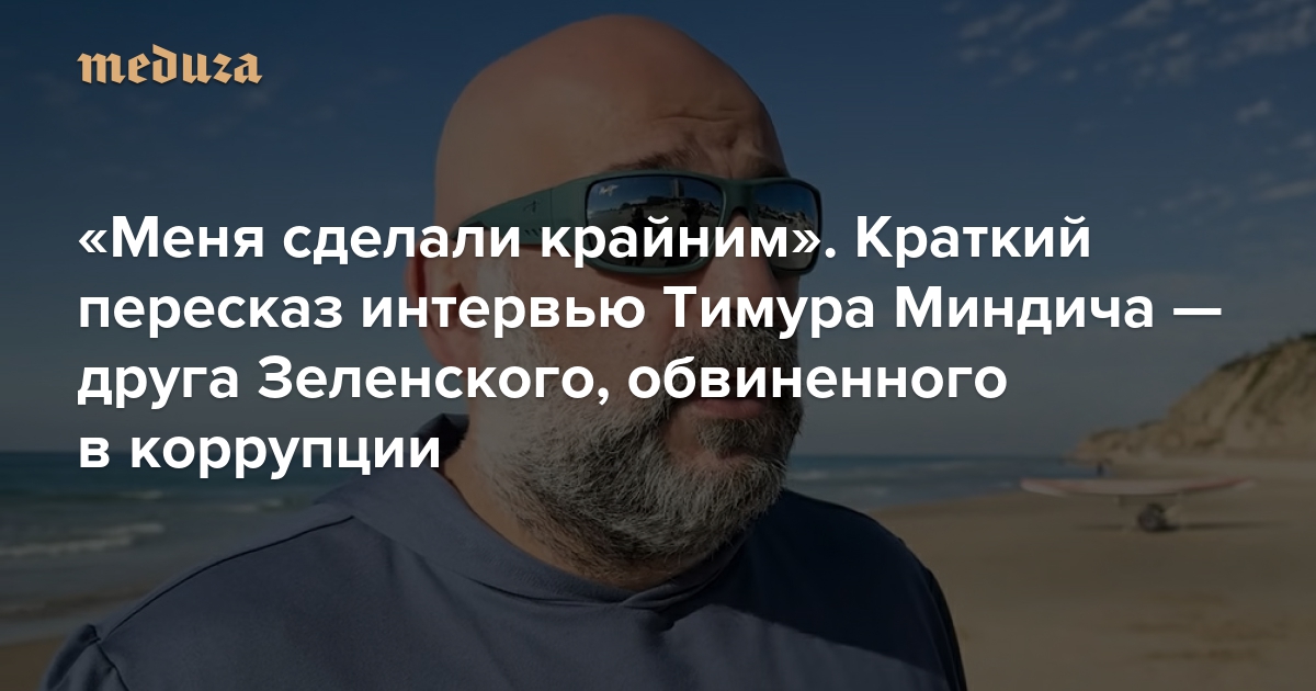 «Меня сделали крайним. Я не буду говорить по фактам» Журналист «Украинской правды» встретил на пляже в Израиле Тимура Миндича — друга Зеленского, обвиненного в коррупции. Вот что тот рассказал