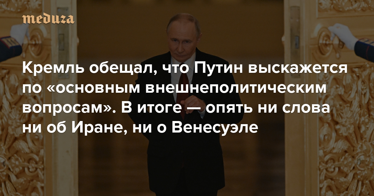 Кремль обещал, что Путин выскажется по «основным внешнеполитическим вопросам». В итоге — опять ни слова ни об Иране, ни о Венесуэле Кратчайший пересказ