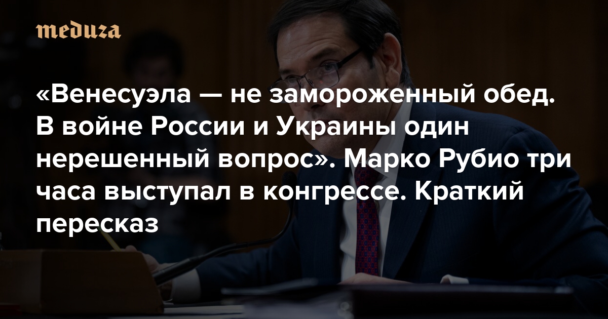 «Венесуэла — не замороженный обед. В войне России и Украины один нерешенный вопрос. США могут превентивно ударить по Ирану» Марко Рубио три часа выступал в конгрессе. Краткий пересказ