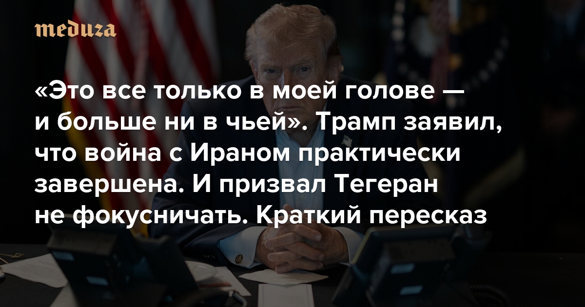 «Это все только в моей голове — и больше ни в чьей» Трамп заявил, что война с Ираном практически завершена. И призвал Тегеран не фокусничать. Краткий пересказ