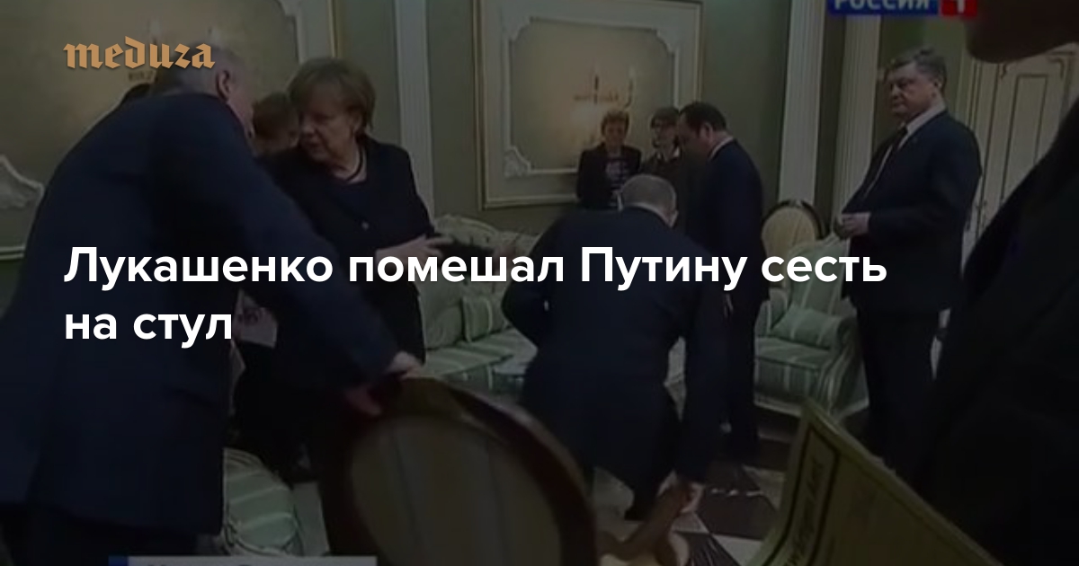 Перед началом минских переговоров об урегулировании конфликта в Донбассе камеры запечатлели непродолжительную борьбу Александра Лукашенко и Владимира Путина за стул. Российский президент пытался придвинуть себе стул, за спинку которого держался президент Белоруссии.