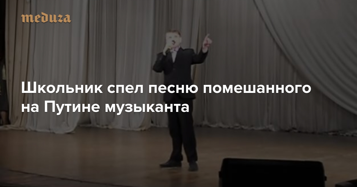 Младшеклассник исполнил со сцены песню «Владимир Путин молодец», в которой поется о «кровожадной орлице», влетевшей в Россию с Запада при перестройке, и Путине, который «страну поднял» и «Россию не предал». При Путине, говорится в композиции, Россия «взяла курс на возрожденье после божьего затменья».