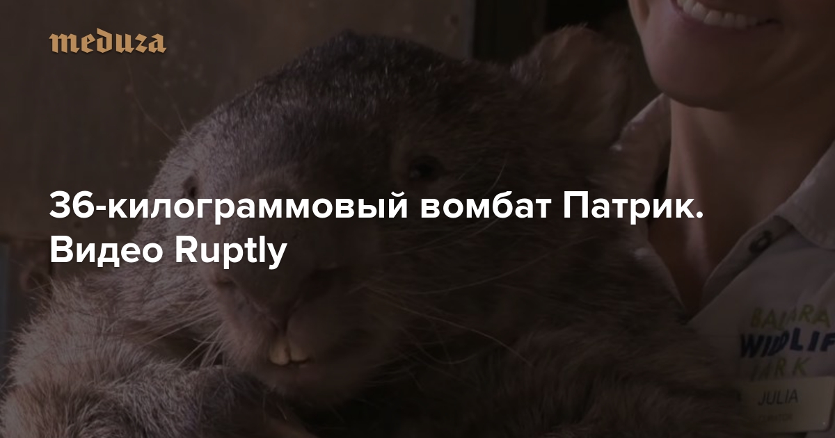Агентство Ruptly сняло короткий сюжет про австралийского вомбата Патрика. Он весит около 36 килограмм (как говорит его смотрительница, в лучшие годы было 40 килограмм) и, по-видимому, является крупнейшим и старейшим вомбатом из ныне живущих в неволе.