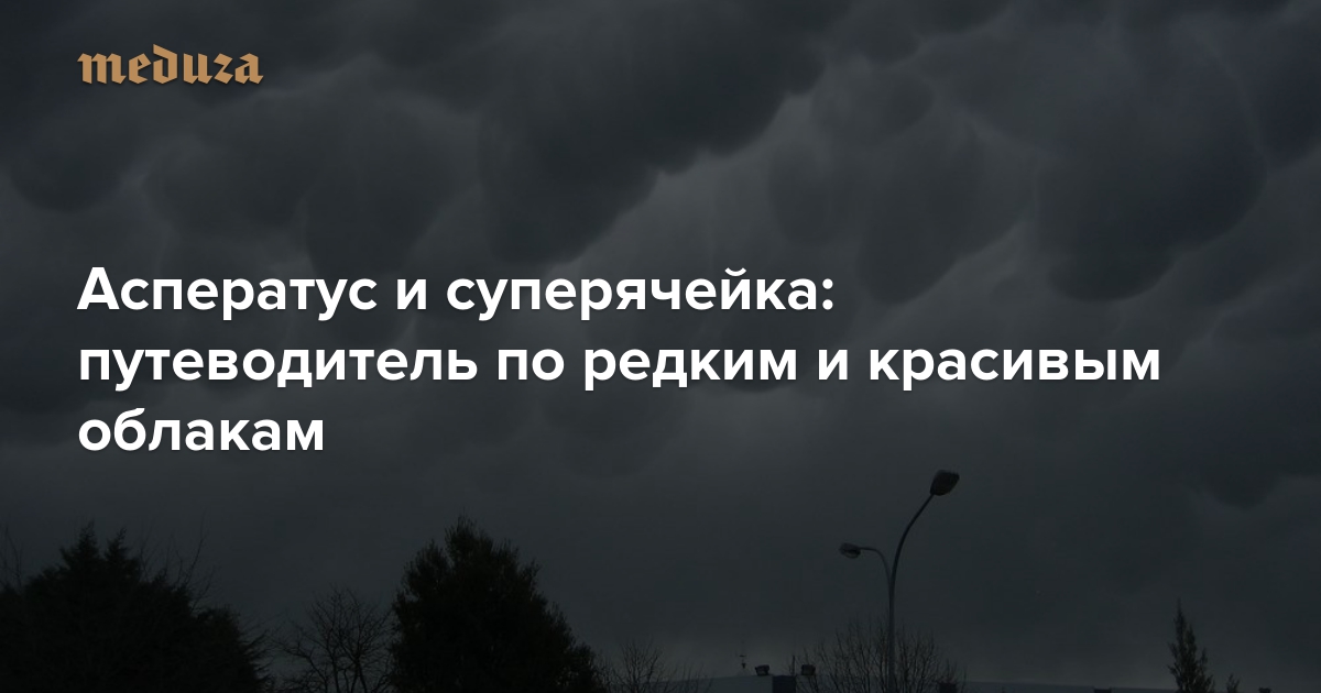 Научное издание N+1 составило путеводитель по красивым, но редким облакам. Например, в материале рассказывается про асператус (Undulatus asperatus), который в 2015 году могут внести в Международный атлас облаков — тогда атлас обновится впервые за 60 лет.