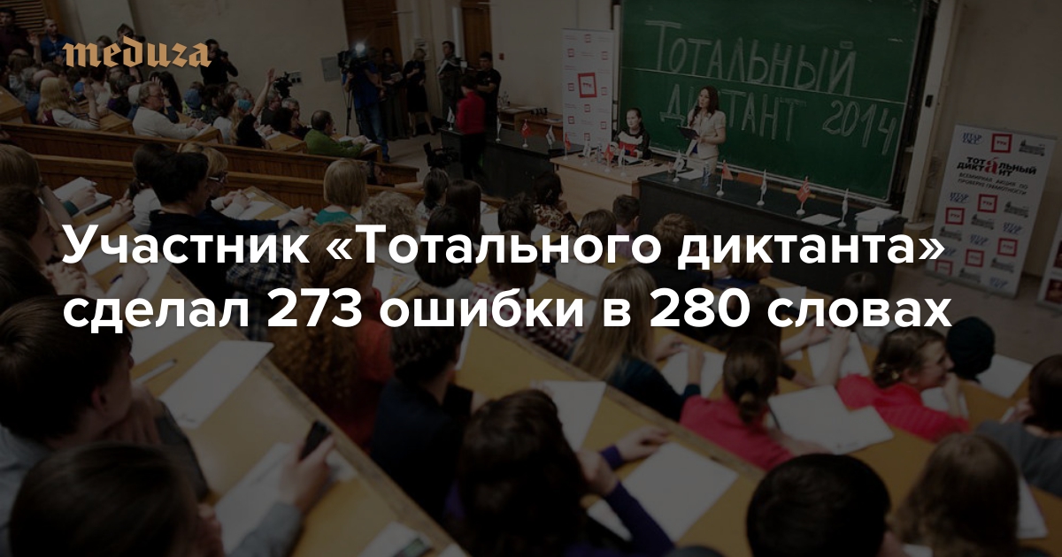 Житель Екатеринбурга, написавший «Тотальный диктант», сделал 273 ошибки в тексте из 280 слов. «При проверке это выглядело примерно так, как будто он писал диктант красной ручкой, а мы проверили его синей», — рассказала помощник проректора Уральского государственного педагогического университета Марина Бабикова.